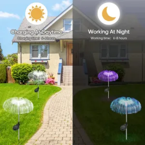 It can withstand all kinds of weather, including heavy rain and snow, so you don’t have to worry about the solar jellyfish decorative light getting wet on rainy days, keeping your home and garden sparkling every night. Perfect for outdoor decorative use!